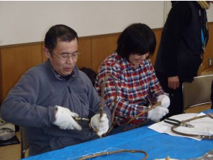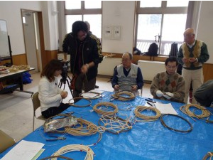 午前にボブスレー・リュージュパークのラウンジでMYかんじきを制作しました。