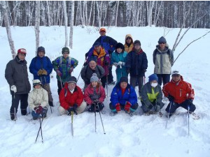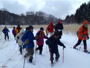 午後からは自分で作ったかんじきを履いて大谷地湿原から尾根を超えて長野市実験林までやって来ました。