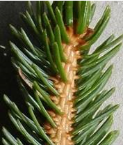 トウヒ属は写真5のように葉柄が枝に着く部分が「葉枕」と言う独特の形をしている事と、 葉の先端が尖っています。・・・・・・トウヒ属の重要な特徴。