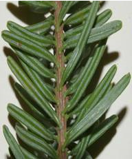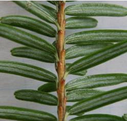 最後のツガ属は写真6のように葉柄は葉身より明らかに細く明確に区分できる事と葉の先端が凹みます。