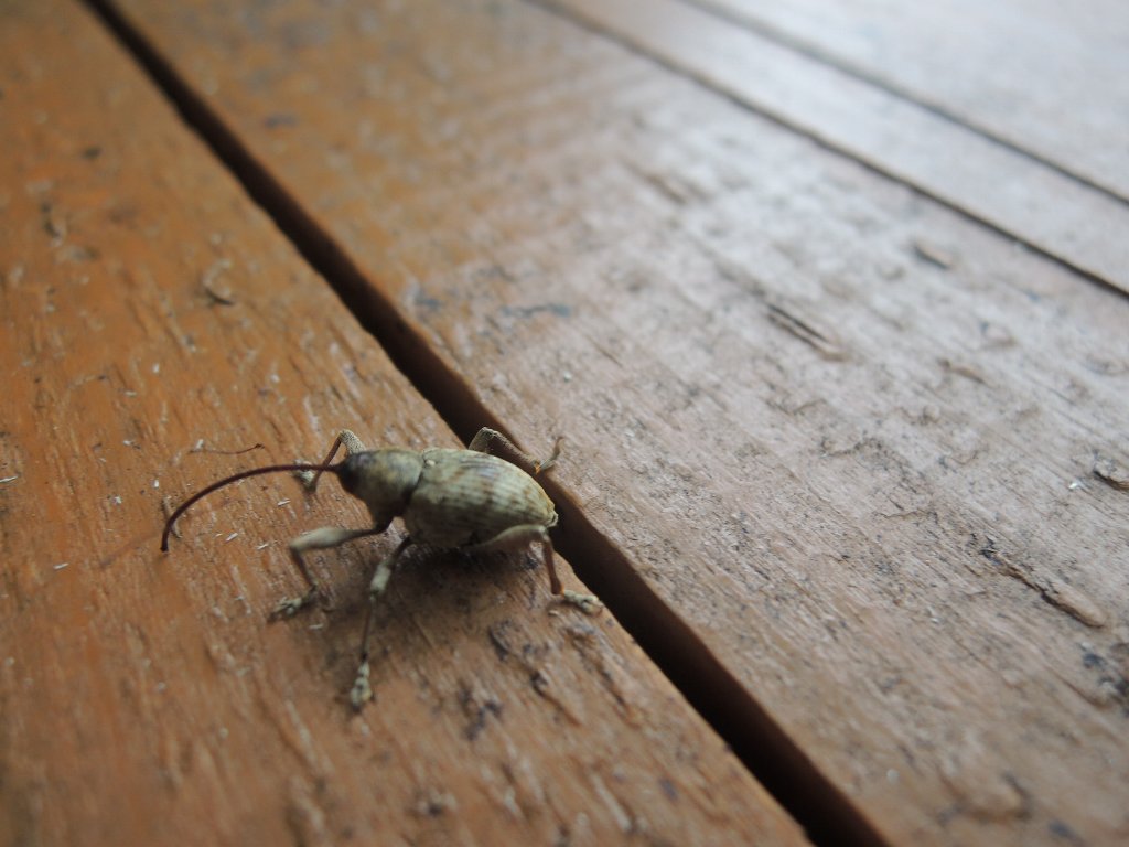 これは、ハイイロチョッキリ? 2024年10月3日 最終更新日時 : 2025年7月13日 mori 2024/10/03 広場のベンチで作業していたら、あまり見かけたことがない虫がいたのでカメラをむけてみたら、こんな虫が。これは、ハイイロチョッキリ?