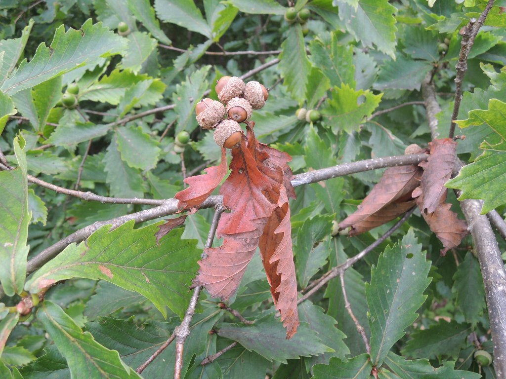 ミズナラの枝の先端部分だけ枯れたようになっているところがありました。