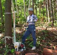 8月19日の月例活動日にデビュー、本日の作業現場は『勿体無い』が皆の智恵と工夫の発想を生んだD地区、 先月間伐したスギ材を集材場所に2~3メートル運ぶのに4人がかりで怪我と危険の隣りあわせやっとこ、2本運んでグロッキーもう沢山。