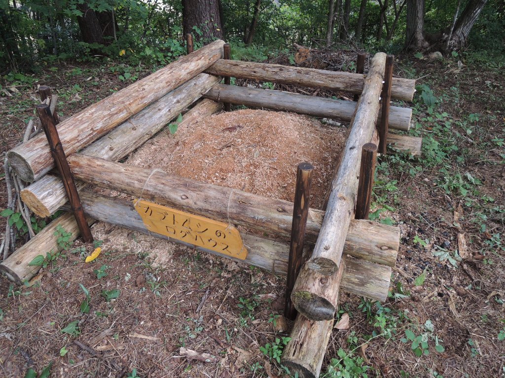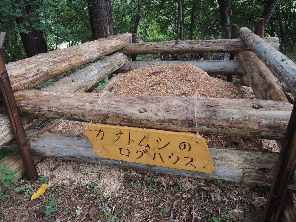 カブトムシのログハウス看板作成 2025年10月5日 最終更新日時 : 2025年10月5日 mori 「カブトムシのログハウス」の看板を作りました。オガクズの中を確認してみましたが、カブトムシの幼虫はまだ入居していないようです。