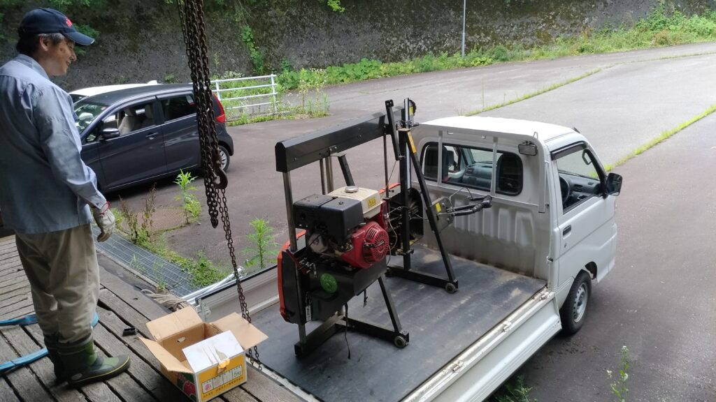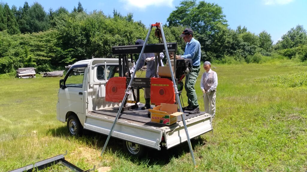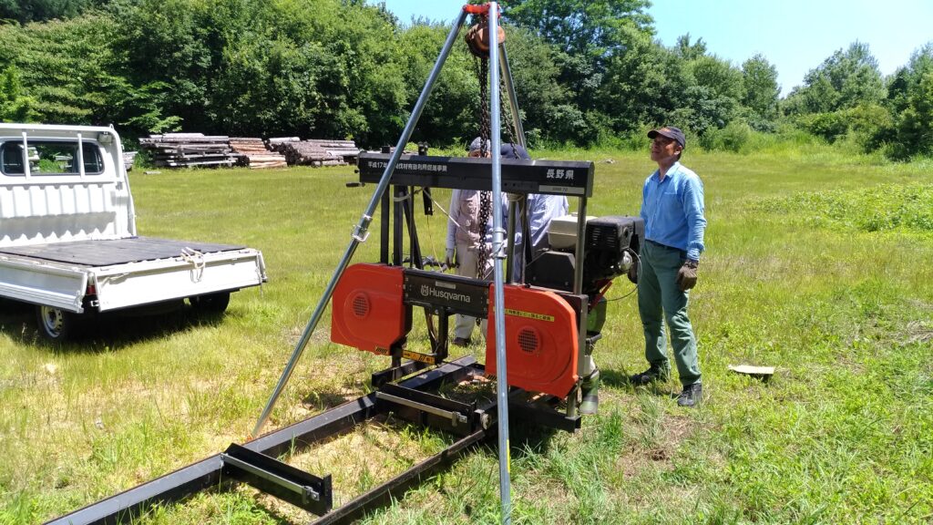 チェーンブロックで簡易製材機を移動 2019年8月3日 最終更新日時 : 2025年7月13日 mori 2019/08/03 計量棟に保管していた簡易製材機を広場に運搬しました。 計量棟内から車の荷台に移動、車の荷台からレールの上に下ろす時にチェーンブロックを使用することにより大型機械を使わずに移動することが出来ました。