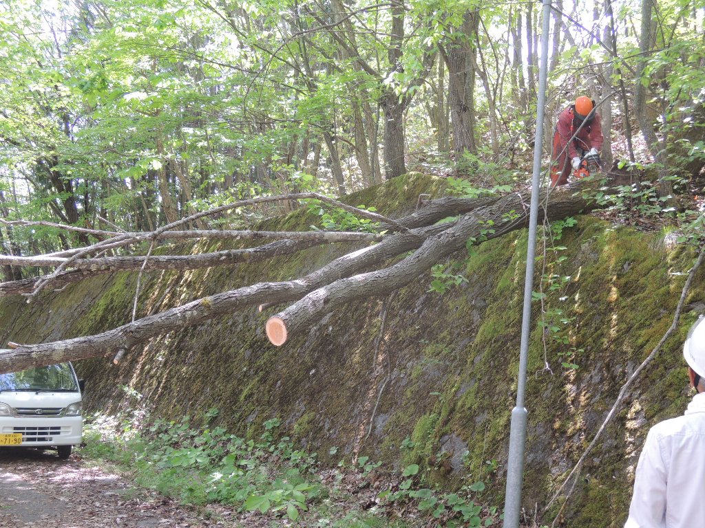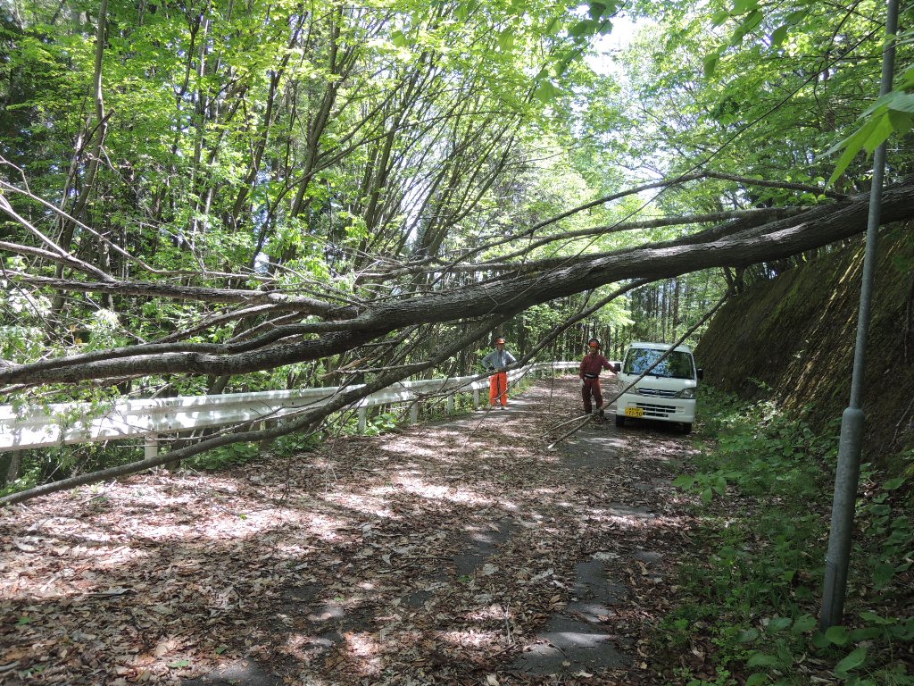 倒木処理 2024年5月11日 最終更新日時 : 2025年7月13日 mori 2024/05/11 スパイラル内の車道脇に倒れている木が何本かあったのでそれを片付けようと現場に向かう途中、車道を塞ぐように倒れている木があり、この倒木処理をしました。