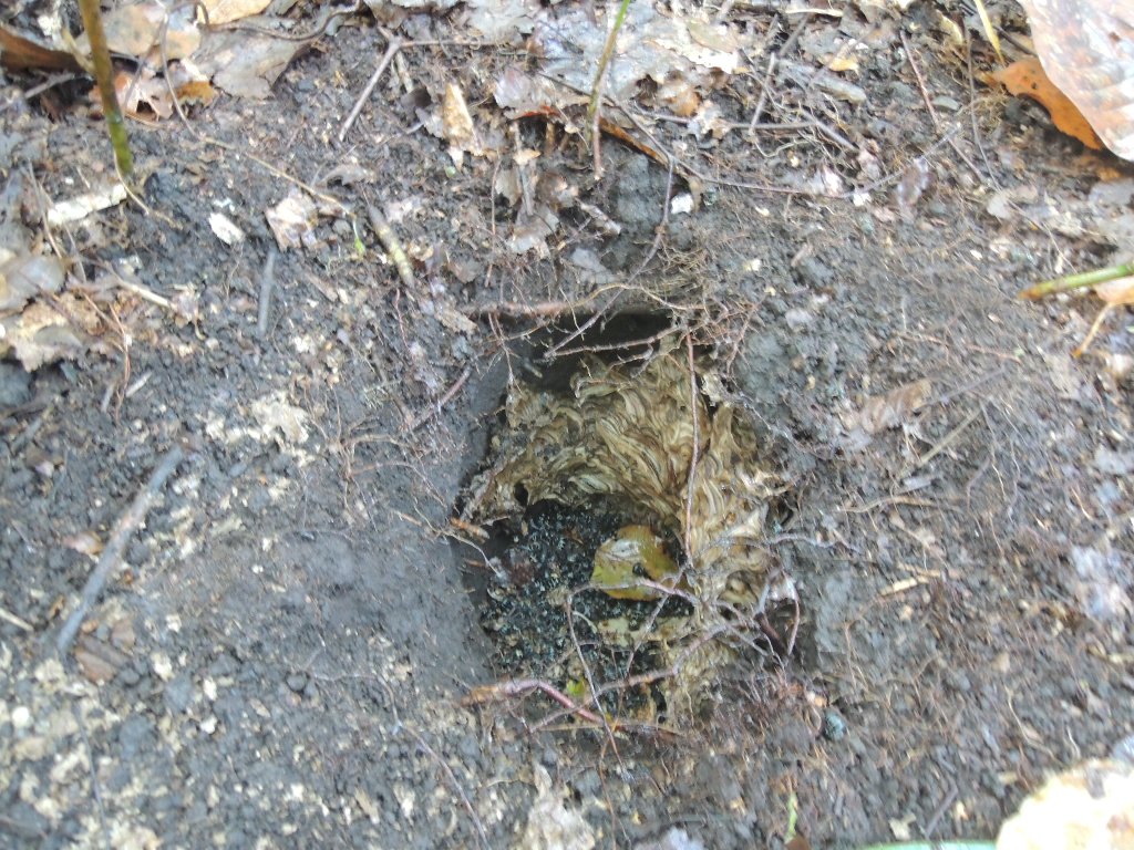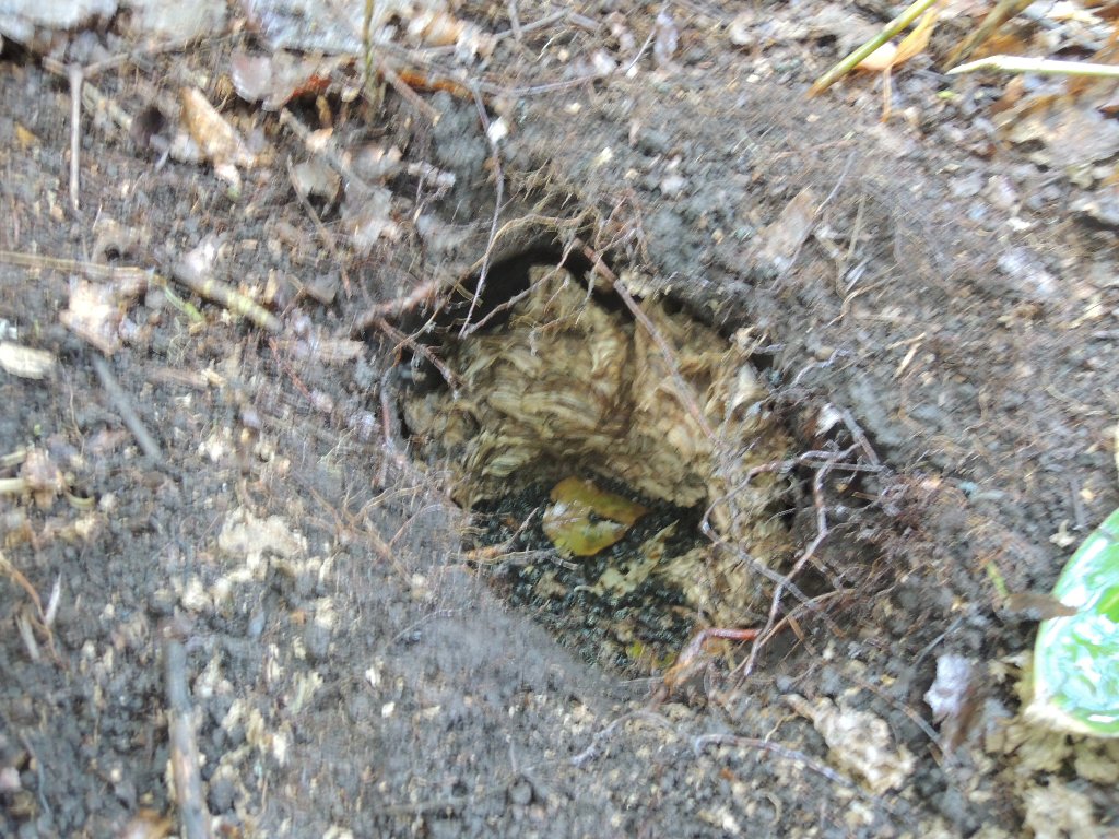 遊歩道沿いの笹刈りをしていたら、ブーンという蜂の羽の音がしたので周りを見回していたら、背中とお尻を刺されてしまいました。クロスズメバチ(地蜂)は黒くて、見えづらい上に地面に近いところを飛んでいるので気が付くが遅れたようです。