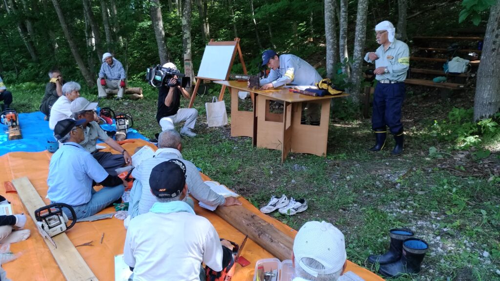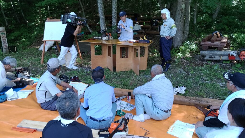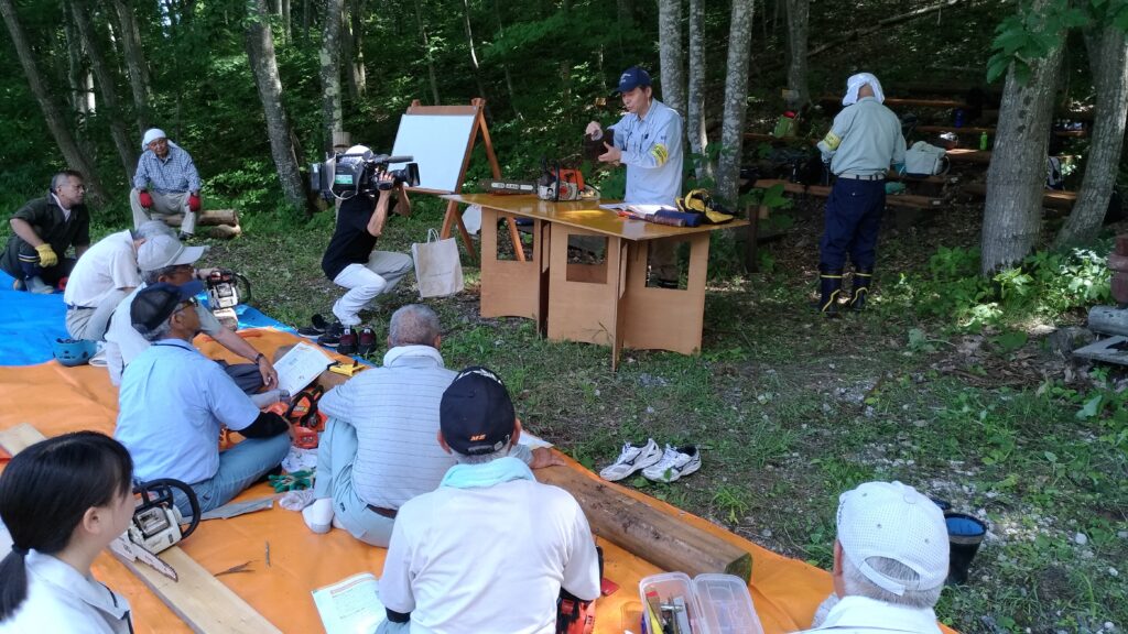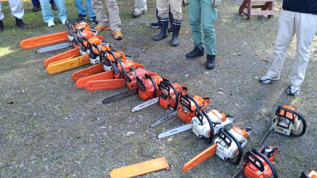 林業についての概要、チェーンソーの構造・整備・取扱についての講義、チェーンソーの目立て実習を行いました。