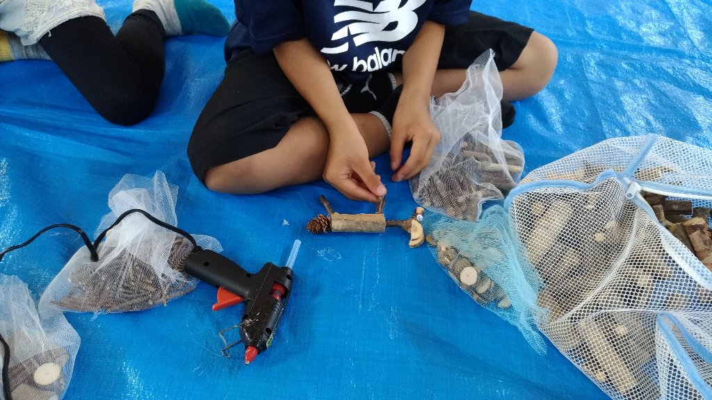 これまで何度か木工クラフト体験コーナーを担当してきたのですが、作るものの傾向が少しずつ違うように思えます。今回の木工クラフトでは、足の動きがあるヤギ、首をかしげている馬、何を作っているのかわからないけど面白い表情のものが出来上がっていました。
