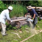 直径60cmくらいの丸太をチェンソーで製材するのですが、排気量の大きいチェンソーであっても簡単には製材できません。チェンソーが悲鳴をあげそうでした。