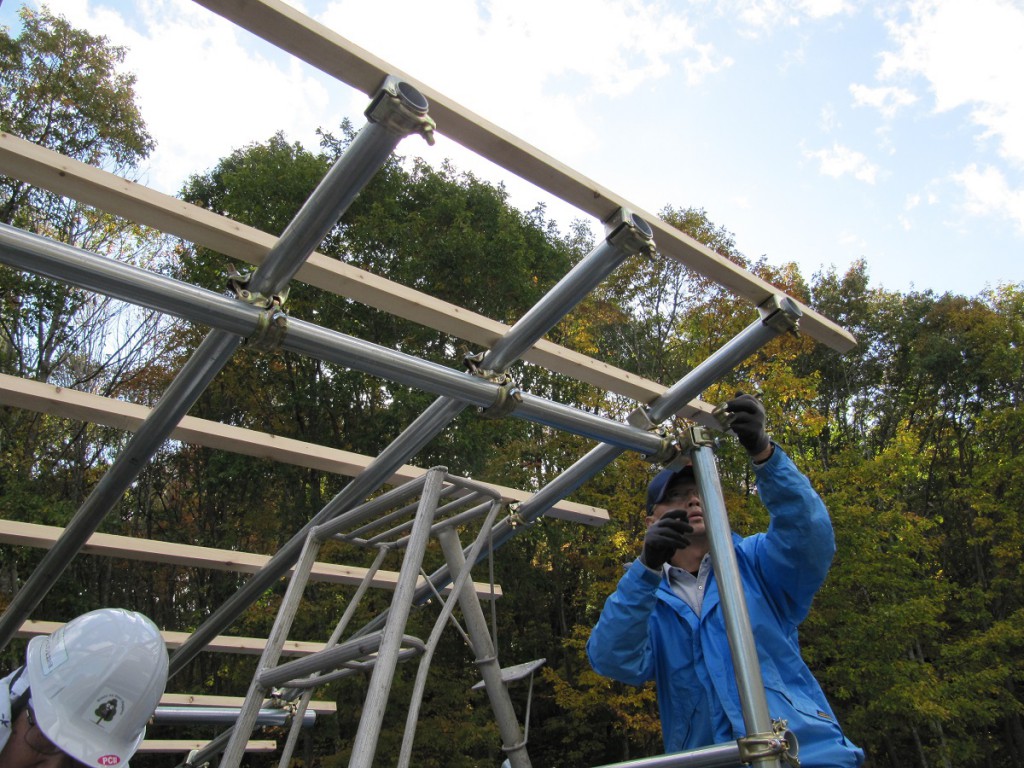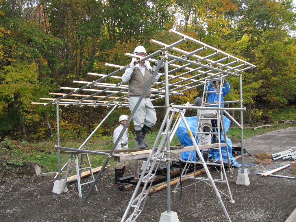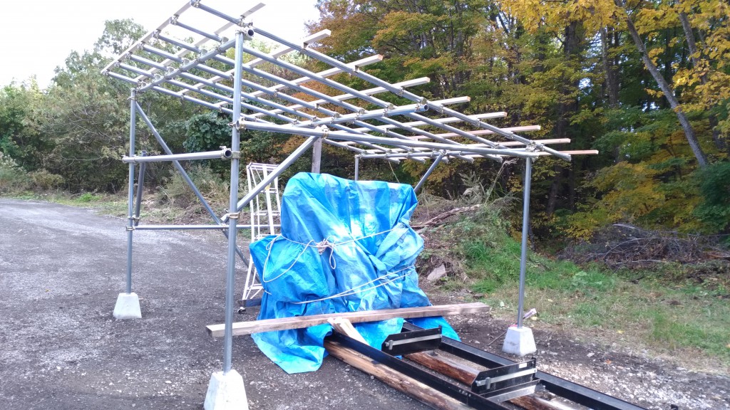 前日から作業を開始して、本日も午後から作業したのですが、まだ屋根の波板は張れていません。