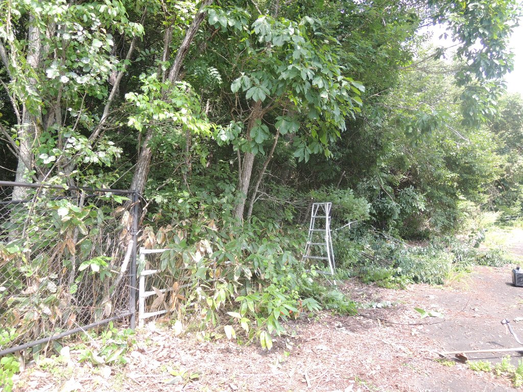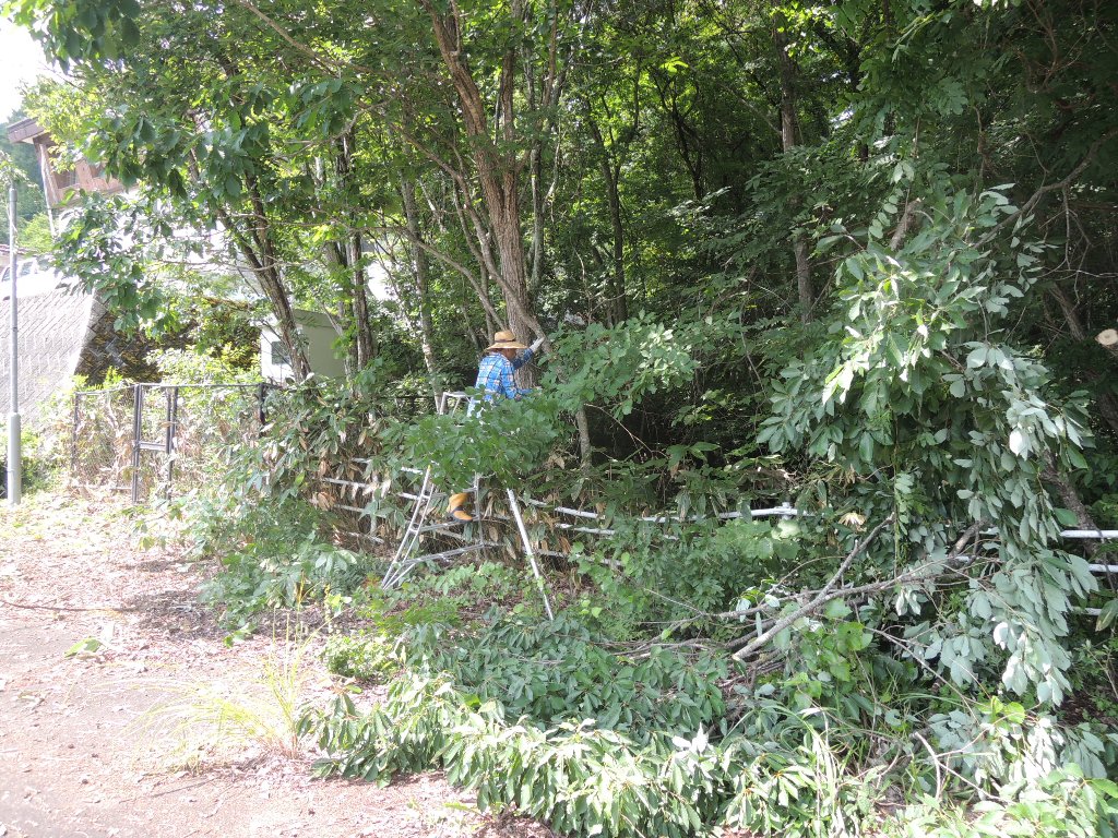 駐車場北側で生い茂っている樹木の伐採をしました。