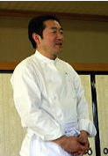 皆で食べた鹿は、今年の2月に「信州つきのわ熊研究会」の後藤さん(写真1)が、長谷村で仕留めた子鹿で、 「信濃ハム」の小林一三シェフ(写真2)の手で調理されたものでした。