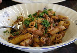 当日用意された料理はハム(写真4)、ベーコン(写真5)、ヒレ肉のソテー、鹿肉のミートソースパスタ(写真6)と多彩な献立でした。