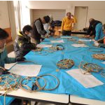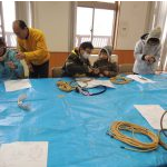 屋内でかんじきを作っていた午前中には雪が少し降っていたのですが、午後には雪がやみ白い雪がまぶしいくらいでした。