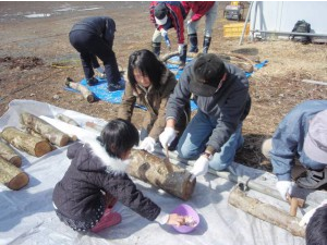 2011/04/10 今年は残雪も多く、作業を急遽自由広場に移し、雪冷えの中、開催いたしました。 皆さんの打った駒から来年の秋にはきっとたくさんのキノコが収穫されるでしょう。 今から楽しみですね。