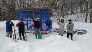 2021/01/11 製材機小屋の屋根の雪おろし、周辺の雪かきをしました。 製材機小屋の屋根は2mの単管を接続して4mにして作ったため、接続部分が弱く、雪の重みで曲がってしまうのではないかということで雪おろしをしました。 […]