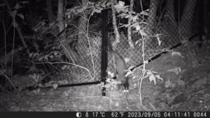 2023/08/31 センサーカメラを設置して、初めてとらえたのは、ハクビシンでした。額の白いスジがはっきり見えています。