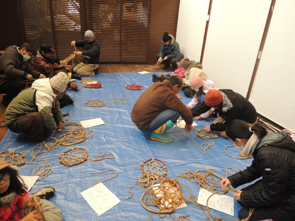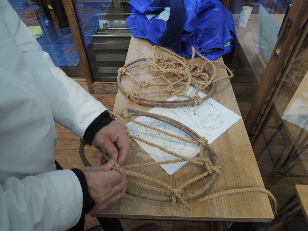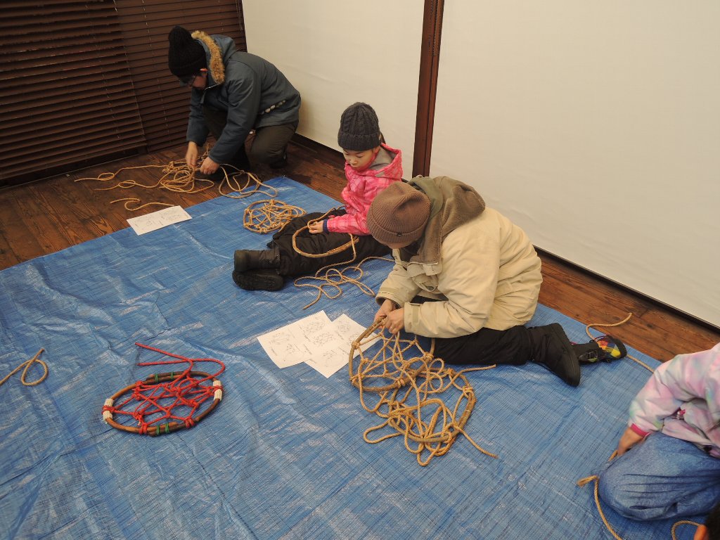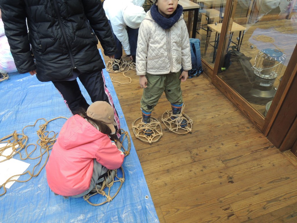 かんじきの輪は、事前に針金で固定しておいたのでロープを編むところだけなのですが、